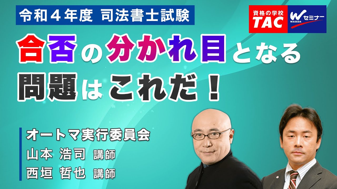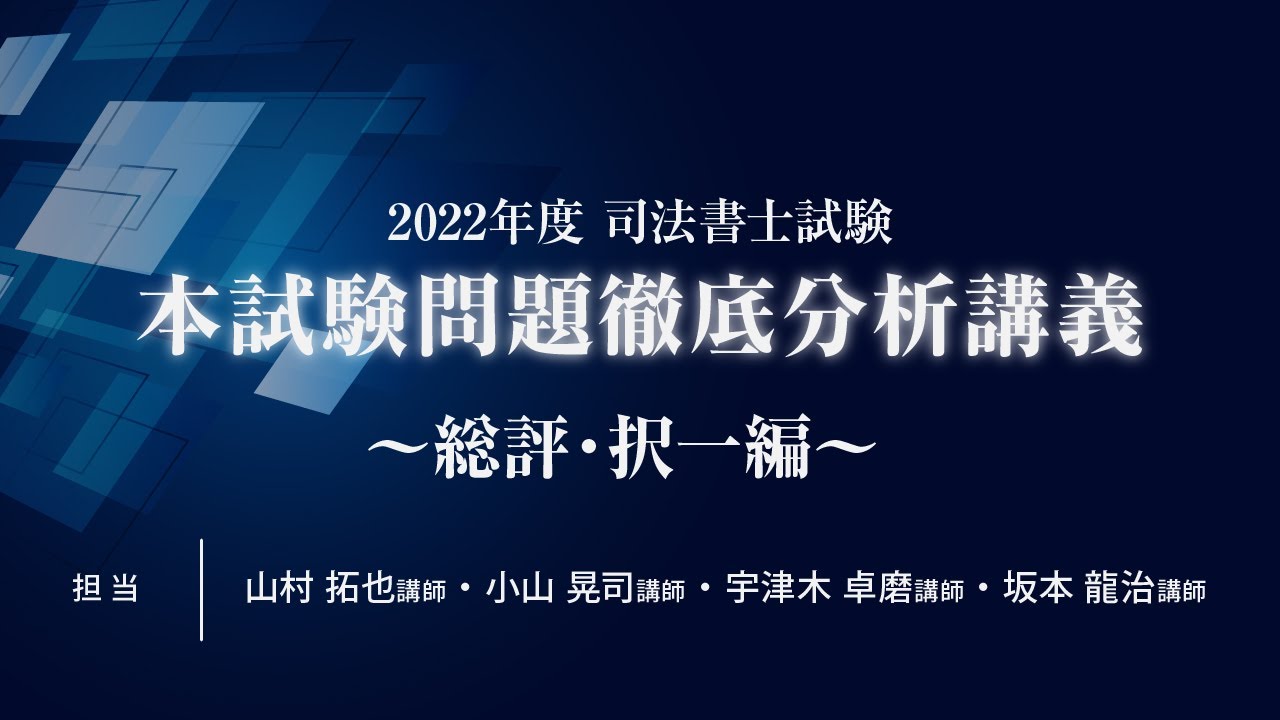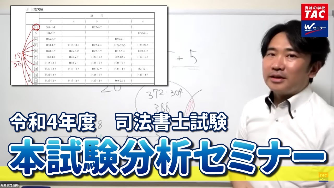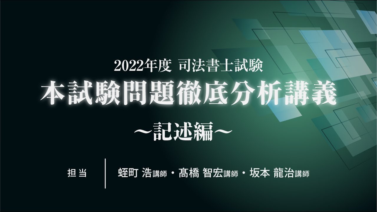 Wセミナー司法書士講座は、山本浩司先生による分析動画と姫野寛之先生による分析動画が公開されました。